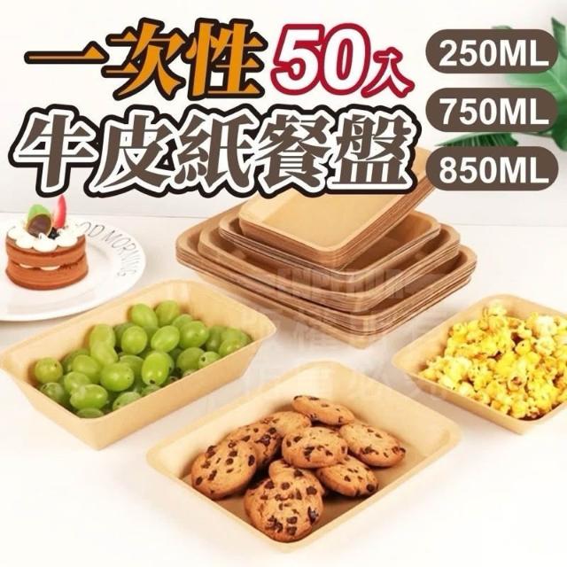 中秋必備🔥 50入食品皮紙餐盤 方形紙盤 一次性餐盤 牛皮紙餐盒 燒烤盤 小喫紙碟 生鮮盤 加厚炸雞燒烤串紙