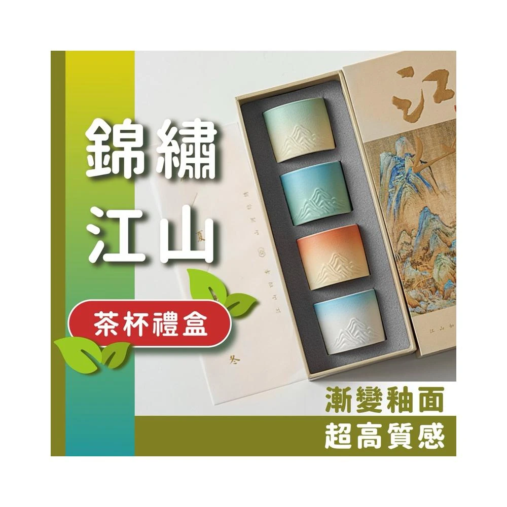 錦繡江山茶杯禮盒|漸層浮雕|高質感藝術杯4入|謝師禮物 茶具 送禮 茶杯 茶杯組 謝師禮盒 茶具組 禮盒