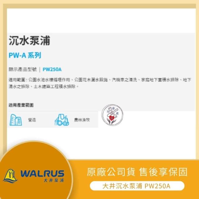 LMA-大井 ★林口新創★PW250A 沉水馬達 抽水機 水龜 污水馬達 積水排除 抽水沖洗 250W(大井泵浦)