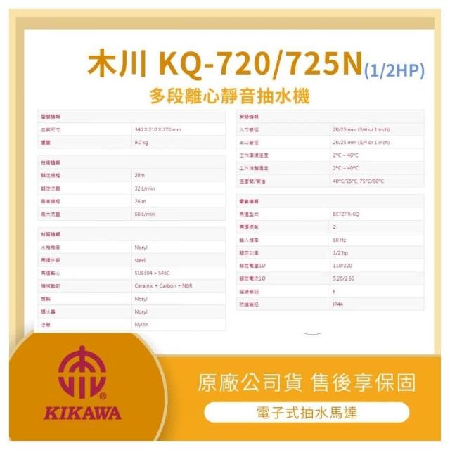 LMA- KQ725N ★林口新創★「附發票」★木川 塑鋼水機 1/2HP 靜音式 抽水機 抽水馬達 不生鏽水機(抽水揚