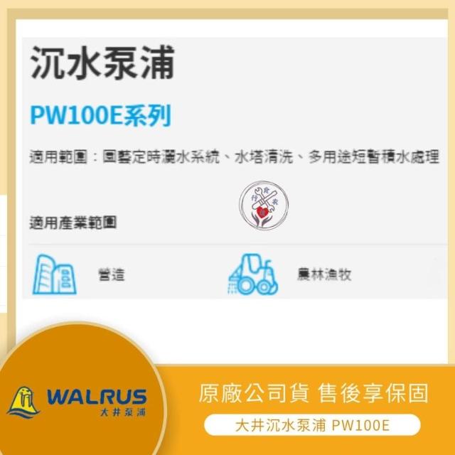 LMA-大井 ★林口新創★PW100E 110V 沉水馬達 抽水機 污水 積水排除 沉水泵浦 100W(大井泵浦 抽水)