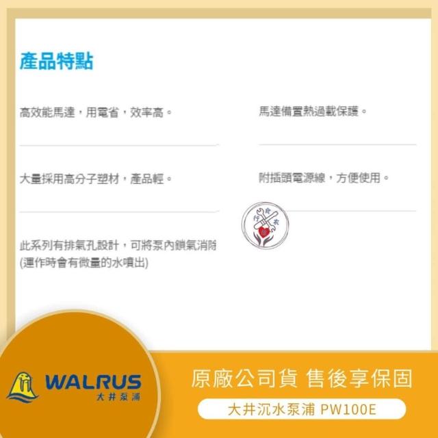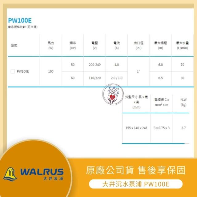 LMA-大井 ★林口新創★PW100E 110V 沉水馬達 抽水機 污水 積水排除 沉水泵浦 100W(大井泵浦 抽水)