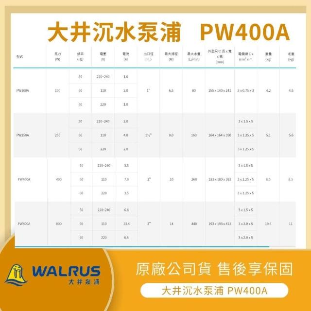 LMA-大井 PW400A ★林口新創★「附發票」★ 沉水馬達 抽水機 水龜 污水馬達 積水排除 抽水沖洗 400W
