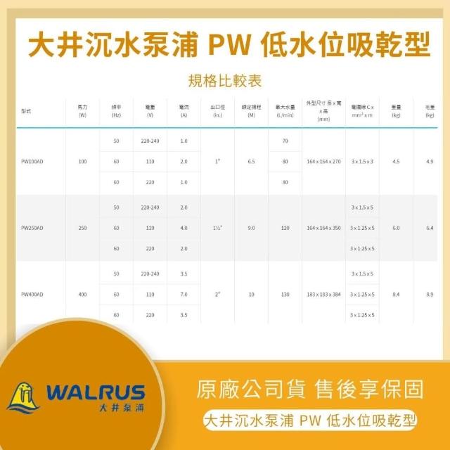 LMA-大井 PW100AD ★林口新創★「附發票」★沉水泵浦 家用小型 抽水馬達 水龜 清除積水 低水位吸乾型 台灣製
