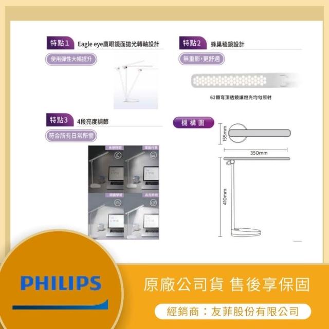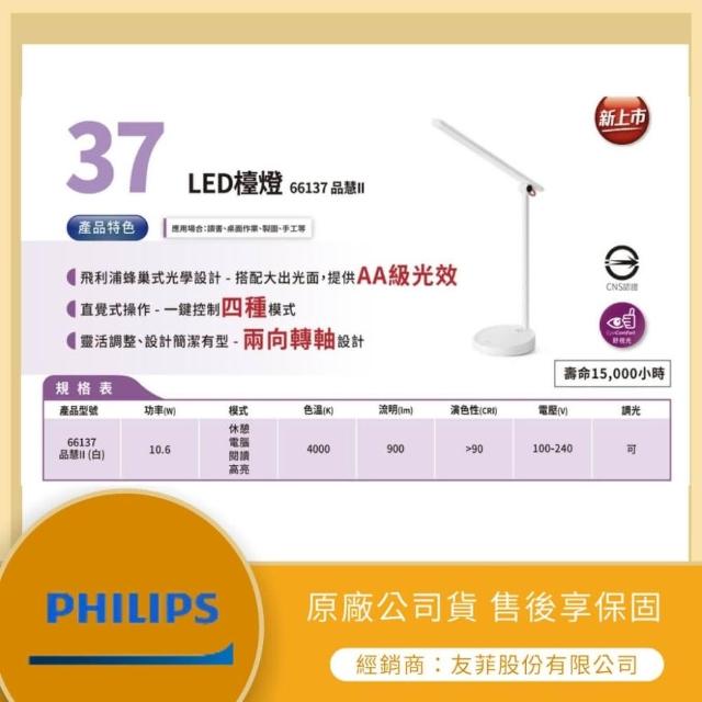 Philips 飛利浦LMA-飛利浦 ★ 林口新創園 Philips★ 飛利浦檯燈 品慧檯燈 護眼檯燈 66137 LED 調光桌燈 自然光