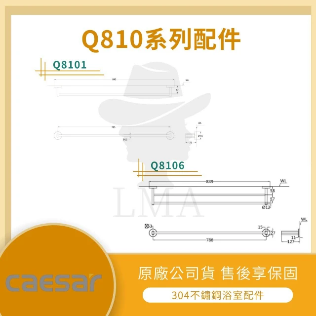 CAESAR 凱撒衛浴【LMA-凱撒衛浴】★林口新創★CAESAR 單桿毛巾架 Q8101 雙桿毛巾架 Q8106 毛巾置物架 Q8109
