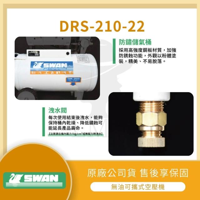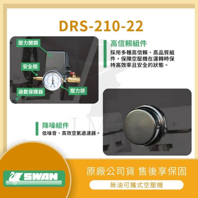 Swan 天鵝【LMA-天鵝牌】★林口新創★ DRS-210-22 SWAN 無油可攜式空壓機 22公升 高效率馬達