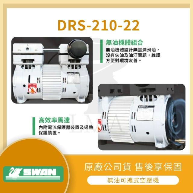 Swan 天鵝【LMA-天鵝牌】★林口新創★ DRS-210-22 SWAN 無油可攜式空壓機 22公升 高效率馬達