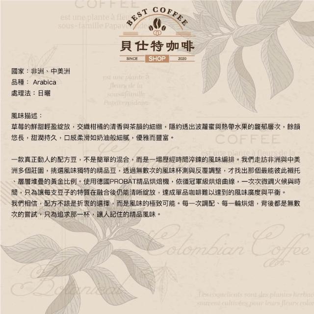 BEST COFFEE 貝仕特咖啡職人冠軍烘焙 黃金比例 精品配方 中烘焙 咖啡豆(日曬處理)