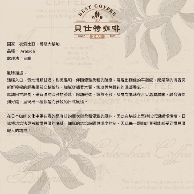BEST COFFEE 貝仕特咖啡衣索比亞 極蘊果露 精品配方 日式慢烘焙 咖啡豆(日曬處理)
