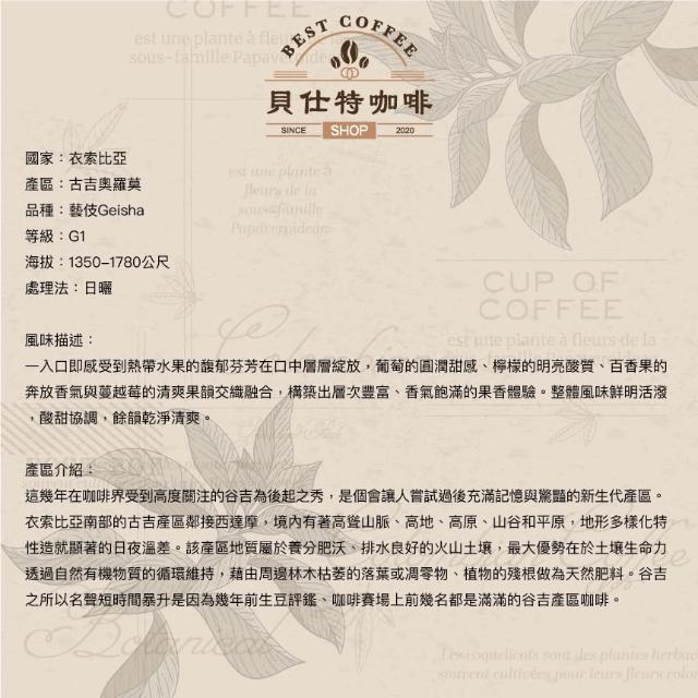BEST COFFEE 貝仕特咖啡衣索比亞 谷吉蔻薩村 格蕾娜 藝伎 中淺烘焙 咖啡豆(日曬處理)
