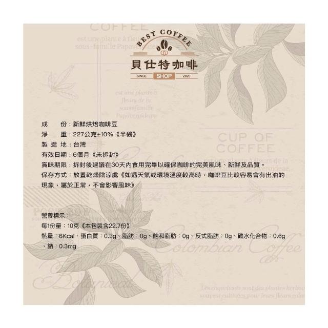 BEST COFFEE 貝仕特咖啡日式藝伎風味 日式慢烘焙 咖啡豆 (水洗處理)