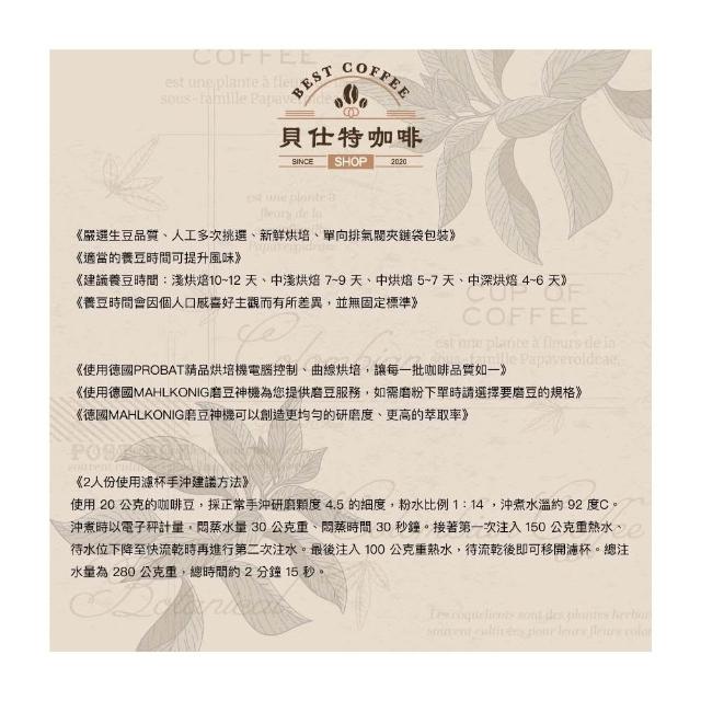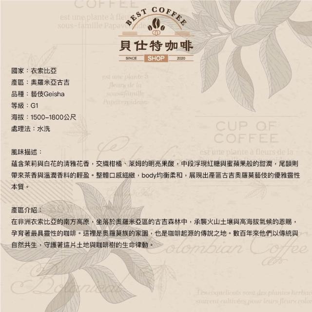 BEST COFFEE 貝仕特咖啡衣索匹亞 古吉奧羅莫 聖林藝伎 G1 中淺烘焙 咖啡豆 (水洗處理)