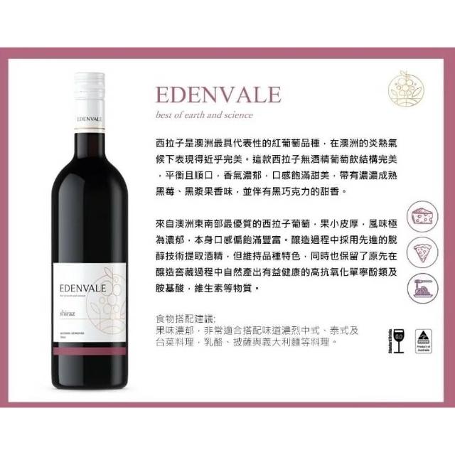 樂和諧澳洲 EDENVALE 伊威養生葡萄飲 西拉子 無酒精紅酒 750ML*12瓶無酒精 送禮 VEGAN