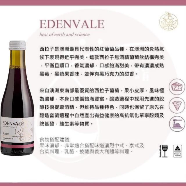 樂和諧澳洲 EDENVALE 伊威養生葡萄飲 西拉子 無酒精紅酒 200ML/瓶 無酒精 送禮 派對 聚會 VEGAN