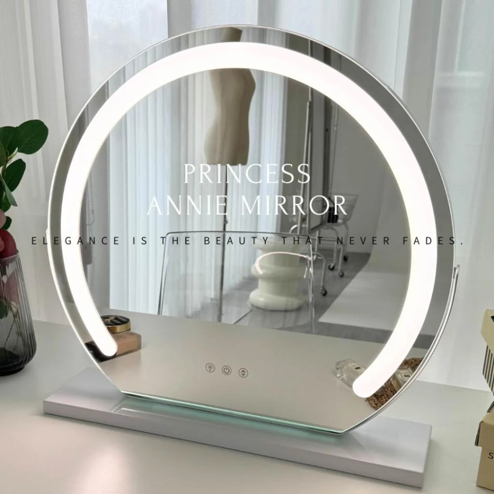 |安妮夢鏡| LED三色光智能化妝鏡 半圓插電款 桌上鏡 高亮度旋轉鏡面