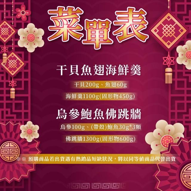 海產教父22 年菜組(干貝魚翅海鮮羹+烏參鮑魚佛跳牆)