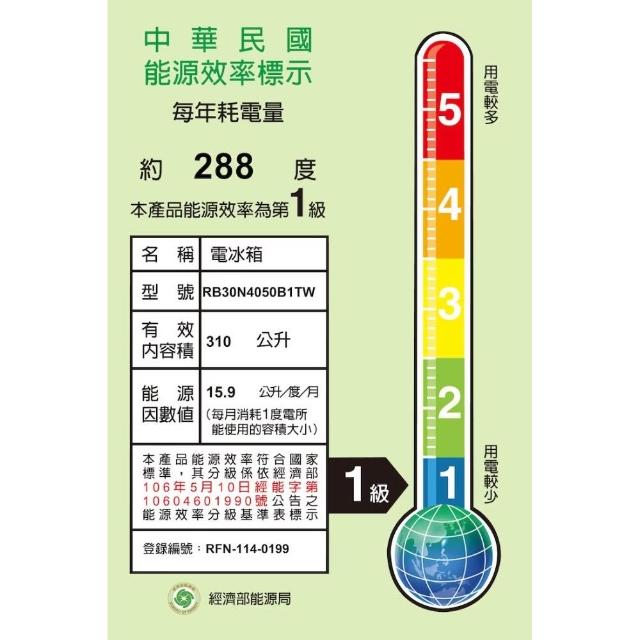 Samsung 三星RB30N4050B1/TW 310L 上冷藏下冷凍雙門冰箱 星霧黑 公司貨