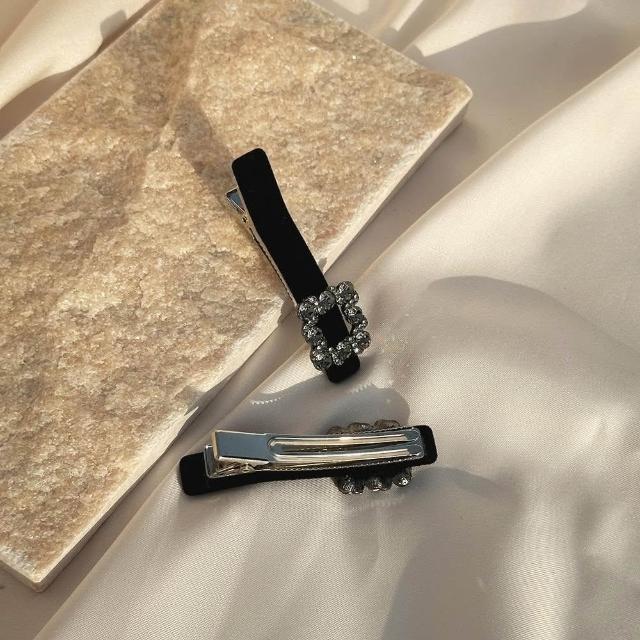 MOON MOON ACC.|壓夾|傾歌 ‧ 黑色鋯石一字 邊夾瀏海夾髮夾 單只販售(精緻氣質)