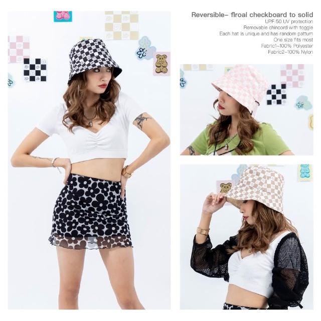 Ray Ray 士林瑞瑞Xotic gear 抗UV壞壞熊棋盤格漁夫帽 XGA2204 棋盤格 遮陽帽 男帽 女帽 可拆卸防風繩 顯臉小