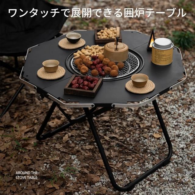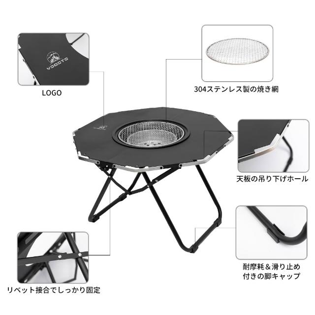 日本【YOGOTO】露營燒烤圍爐煮茶桌 中秋烤肉庭院烤火爐 戶外野炊桌露營燒烤桌烤肉桌 家庭燒烤桌多功能燒烤桌戶外