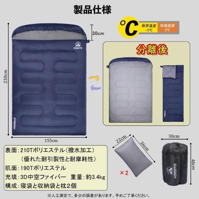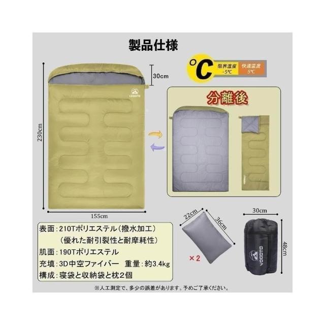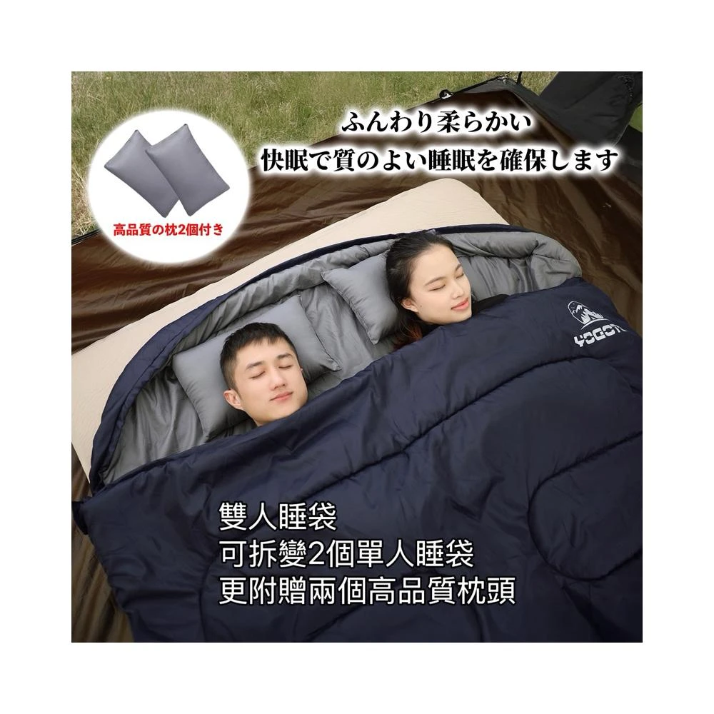 日本【YOGOTO】亞馬遜精選 最夯露營雙人帶枕超保暖填充睡袋 野營雙人可連接木乃伊式防潑水 雙人睡袋壓縮收納