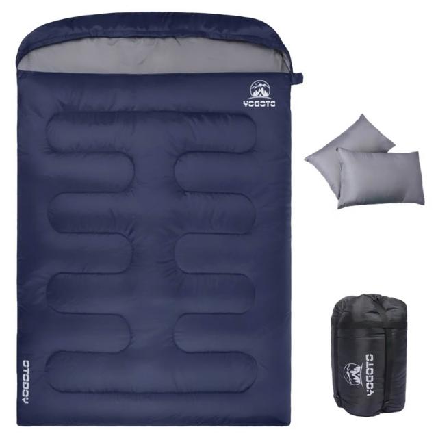 日本【YOGOTO】亞馬遜精選 最夯露營雙人帶枕超保暖填充睡袋 野營雙人可連接木乃伊式防潑水 雙人睡袋壓縮收納