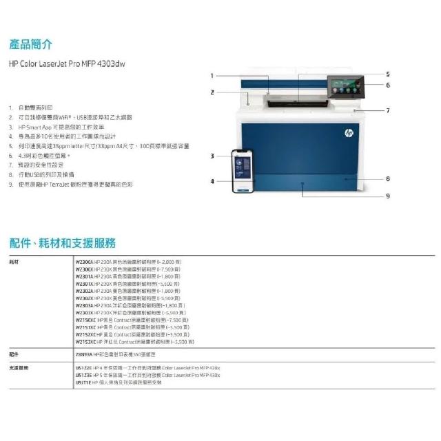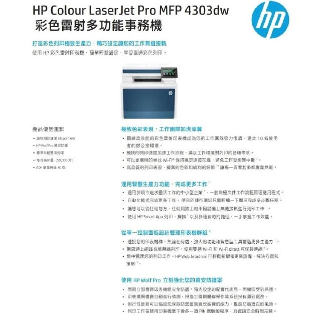 HP 惠普Color LaserJet Pro MFP 4303dw 彩色雷射多功能事務機 (5HH65A)