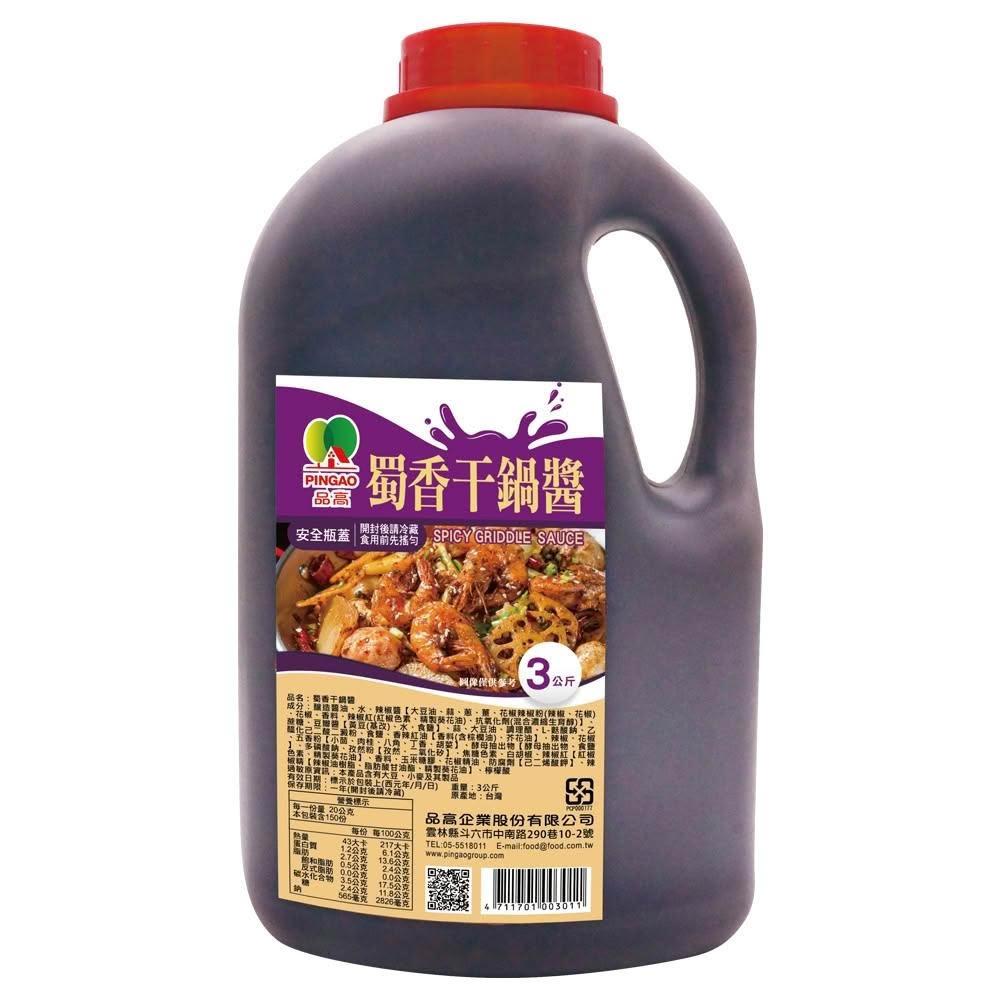 PINGAO 品高蜀香干鍋醬3Kg x 1入|官方直營|乾鍋醬 川辣醬 3kg 大容量 餐飲專用 營業用 購買2罐含以上請選擇宅配寄送