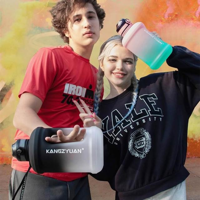 KANGZYUAN康知緣TRITAN噸噸桶 1800ml/2500ml健身水瓶一鍵彈蓋大容量運動水壺 安全鎖防漏附吸管