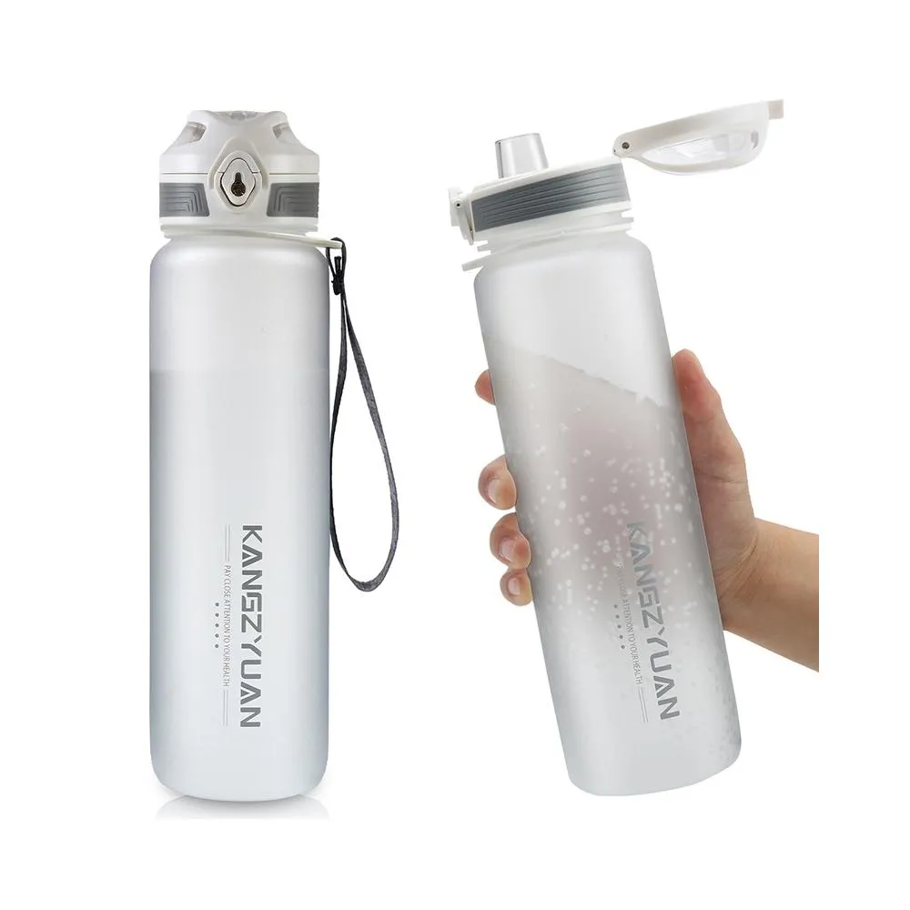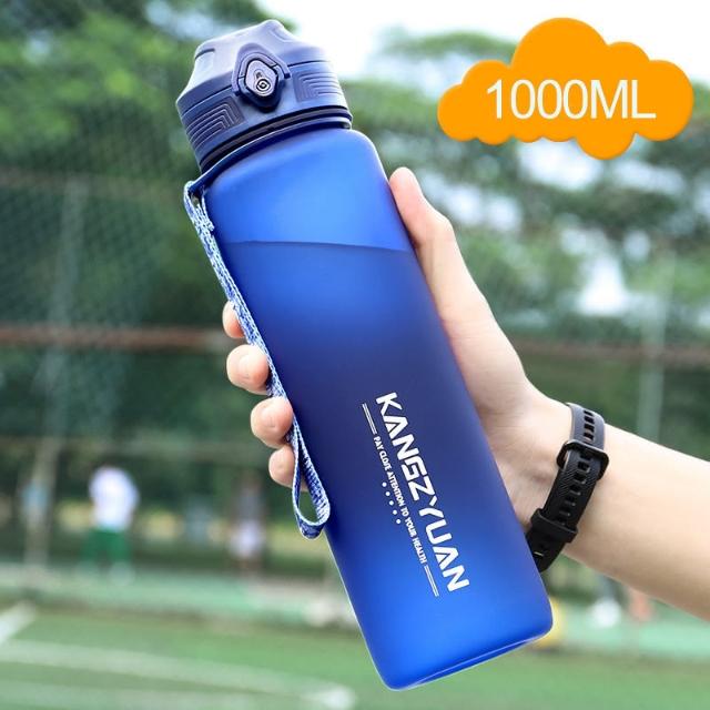 KANGZYUAN康知緣 幻影炫彩TRITAN運動水壺1000ml 耐溫磨砂質感塑膠運動水壺 附提繩安全鎖健身水壺 安全扣防漏彈蓋式運動水壺(TRITAN水壺 不含雙酚A耐溫塑膠水壺 安全鎖防漏水壺 附提繩水壺 磨砂質感防滑瓶身運動水壺)