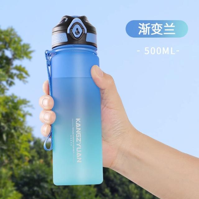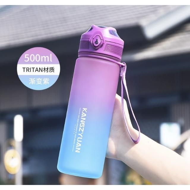 KANGZYUAN康知緣 幻影漸變TRITAN運動水壺500ml 耐溫磨砂質感塑膠運動水壺 附提繩安全鎖健身水壺 安全扣防漏彈蓋式運動水壺(TRITAN水壺 不含雙酚A耐溫塑膠水壺 安全鎖防漏水壺 附提繩水壺 磨砂質感防滑瓶身運動水壺)