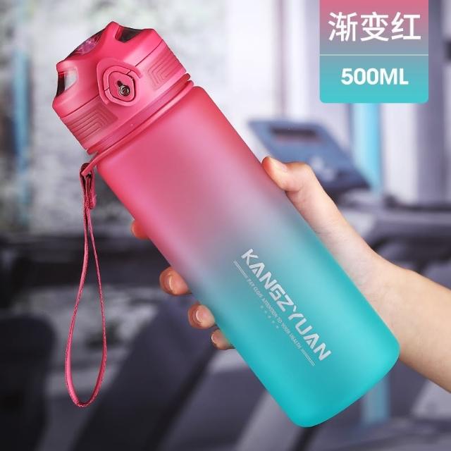 KANGZYUAN康知緣 幻影漸變TRITAN運動水壺500ml 耐溫磨砂質感塑膠運動水壺 附提繩安全鎖健身水壺 安全扣防漏彈蓋式運動水壺(TRITAN水壺 不含雙酚A耐溫塑膠水壺 安全鎖防漏水壺 附提繩水壺 磨砂質感防滑瓶身運動水壺)