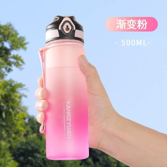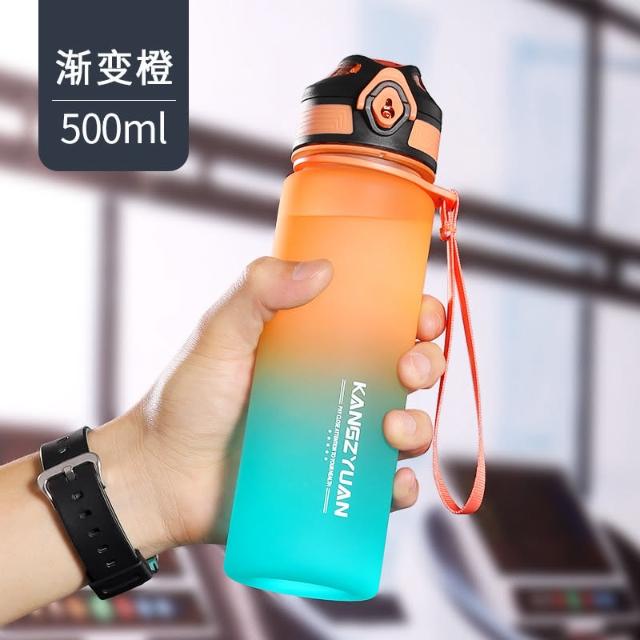 KANGZYUAN康知緣 幻影漸變TRITAN運動水壺500ml 耐溫磨砂質感塑膠運動水壺 附提繩安全鎖健身水壺 安全扣防漏彈蓋式運動水壺(TRITAN水壺 不含雙酚A耐溫塑膠水壺 安全鎖防漏水壺 附提繩水壺 磨砂質感防滑瓶身運動水壺)