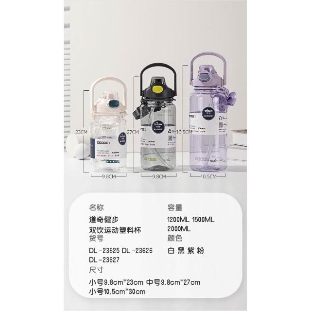 Dodge 道奇道奇TRITAN健步雙飲運動水壺 TRITAN材質1200ml/1500ml/2000ml直飲吸管雙功能耐溫水壺附背帶