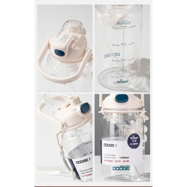 Dodge 道奇道奇TRITAN健步雙飲運動水壺 TRITAN材質1200ml/1500ml/2000ml直飲吸管雙功能耐溫水壺附背帶