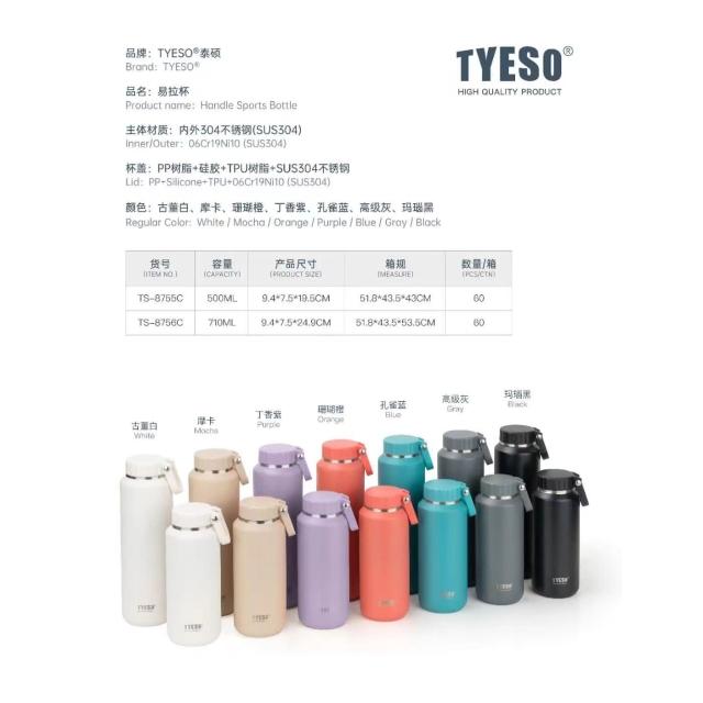 TYESOTYESO易拉杯 304不鏽鋼500ml/710ml大容量保溫杯 防漏旋轉杯蓋附提手保溫杯 手提杯蓋運動保溫杯 304不鏽鋼保溫環保咖啡杯