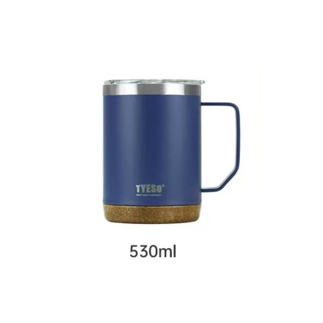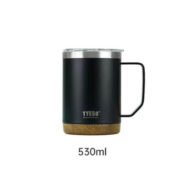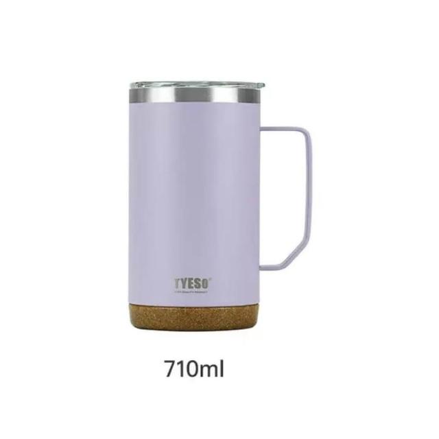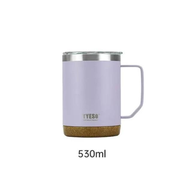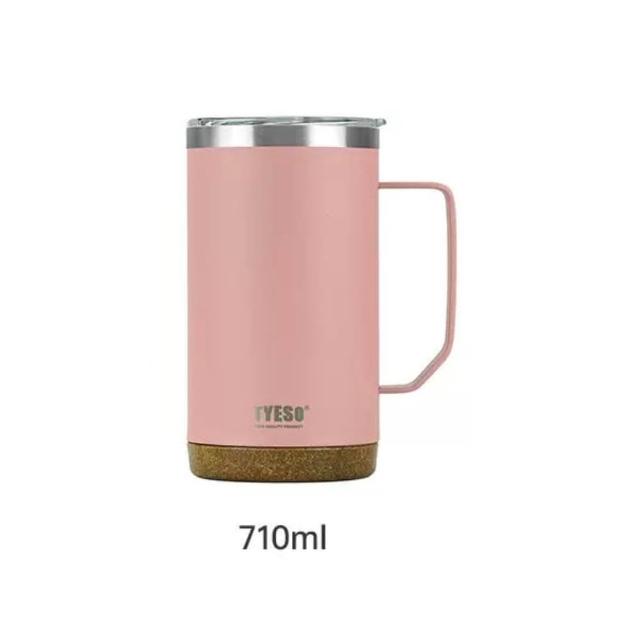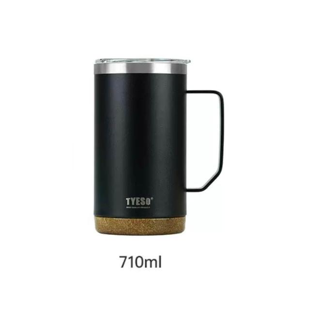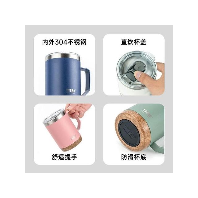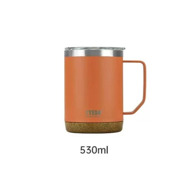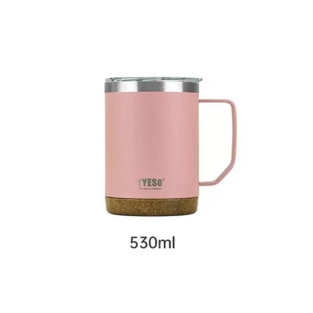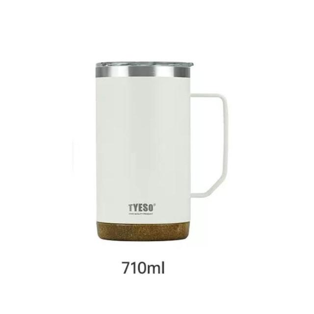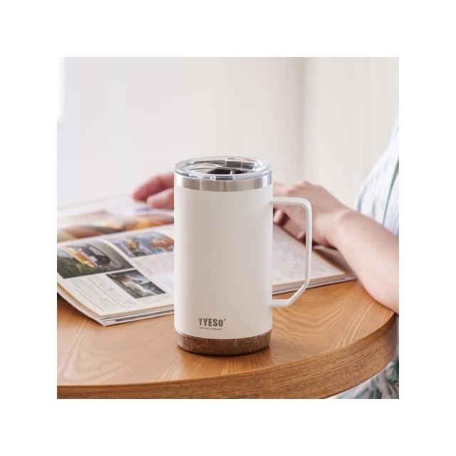 TYESOTYESO咖啡杯304不鏽鋼530ml/710ml 直飲杯蓋防滑軟木杯墊保溫杯 帶手柄保溫咖啡杯 雙層不鏽鋼真空保溫杯