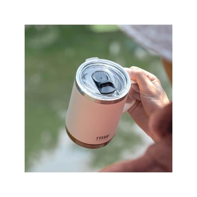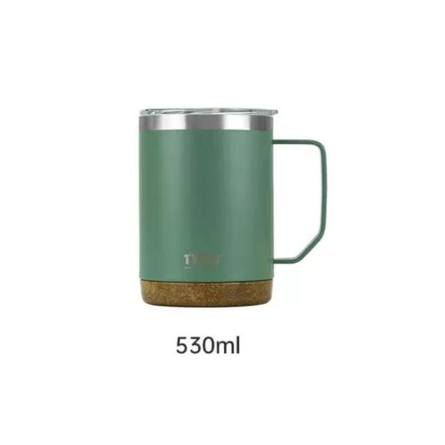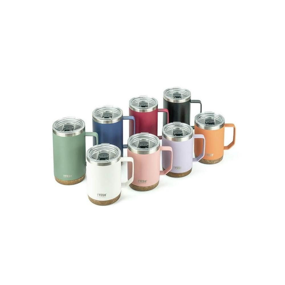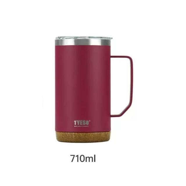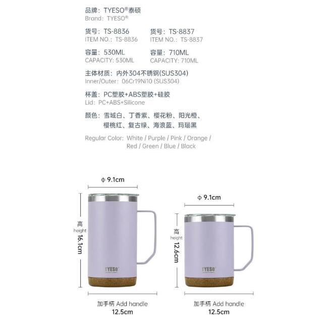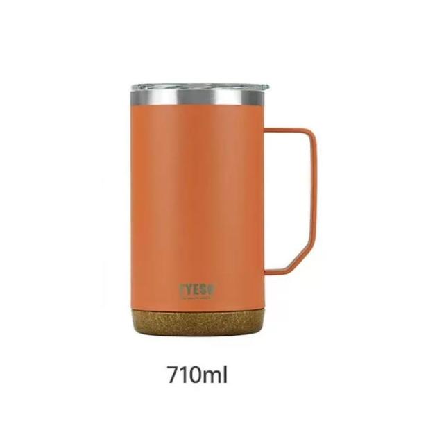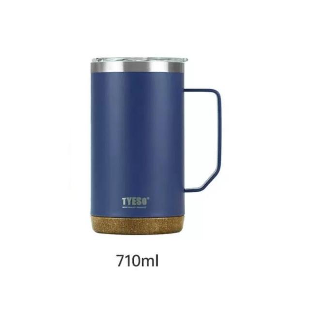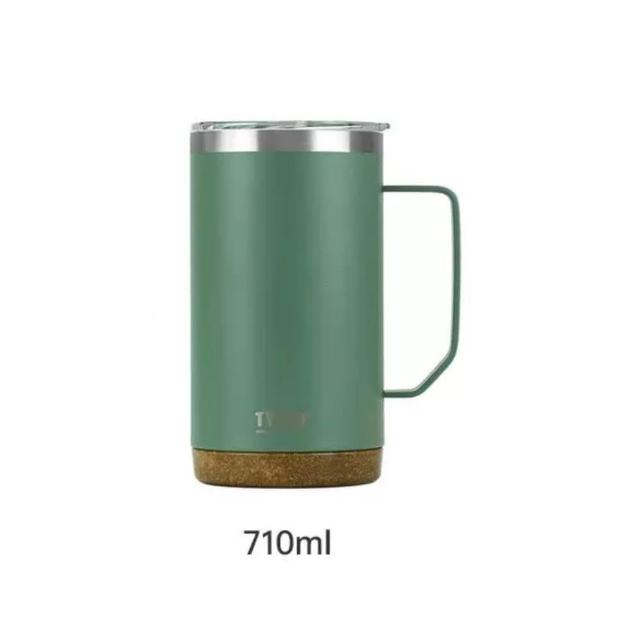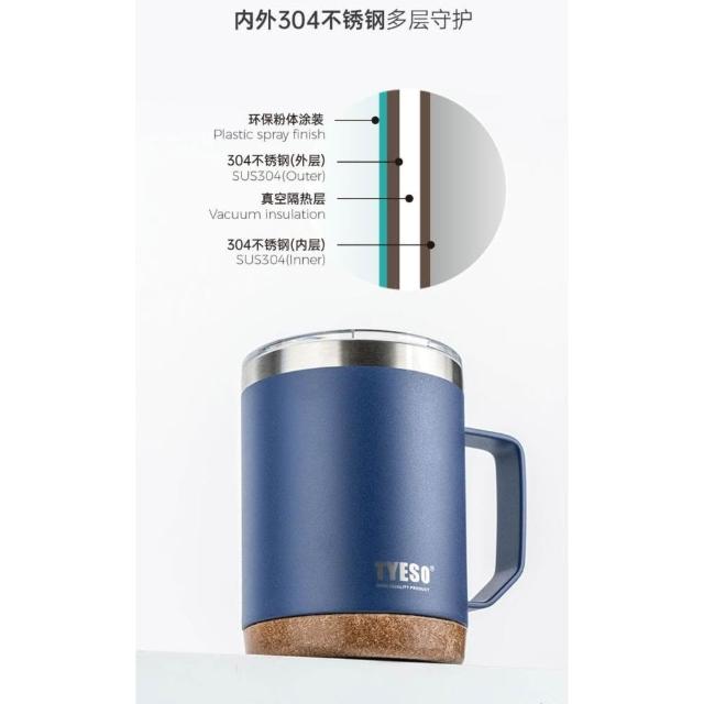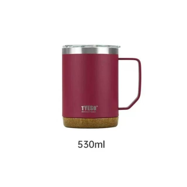 TYESOTYESO咖啡杯304不鏽鋼530ml/710ml 直飲杯蓋防滑軟木杯墊保溫杯 帶手柄保溫咖啡杯 雙層不鏽鋼真空保溫杯