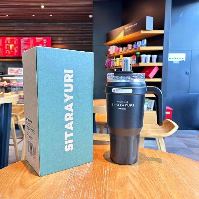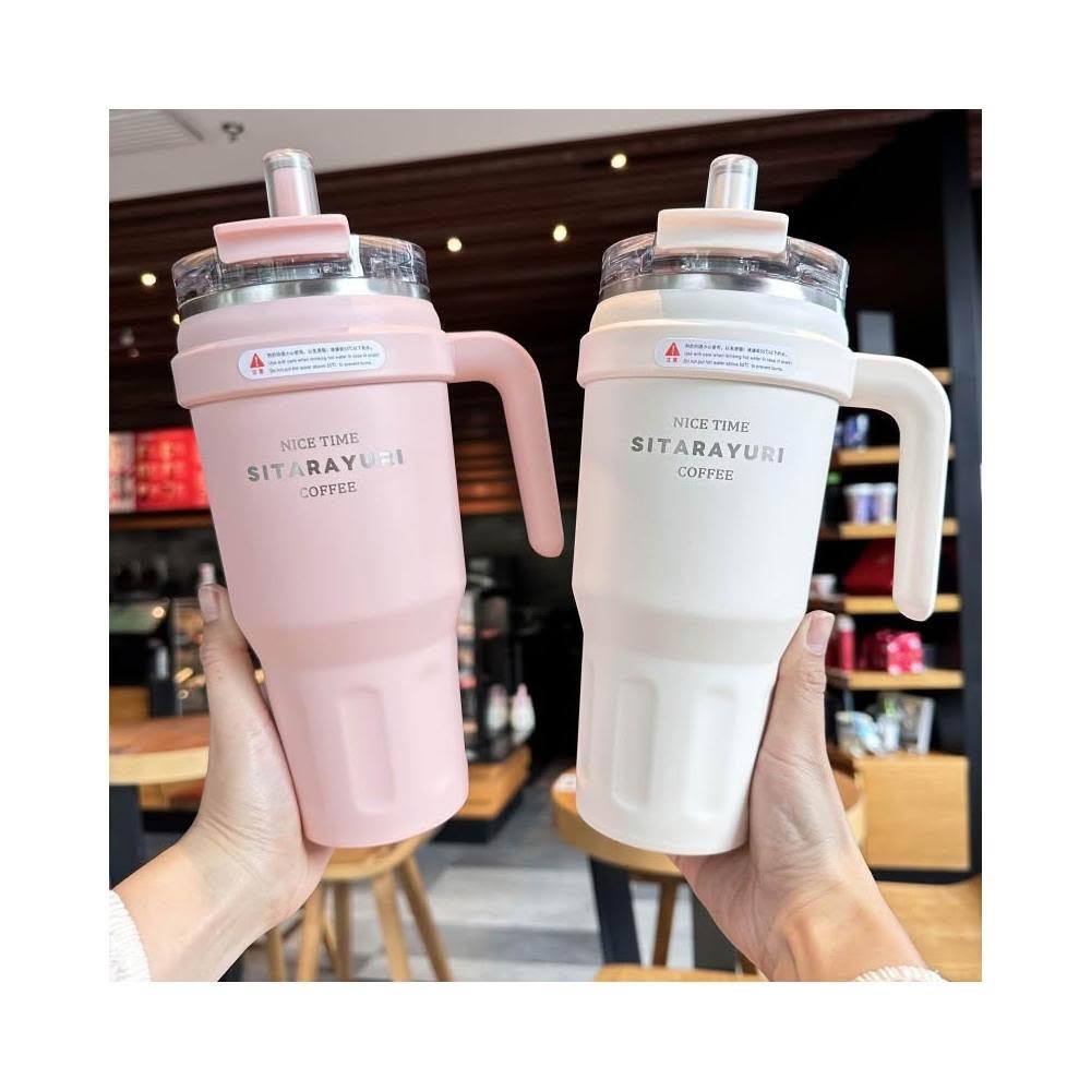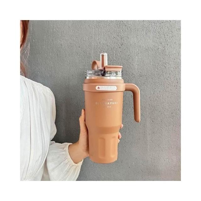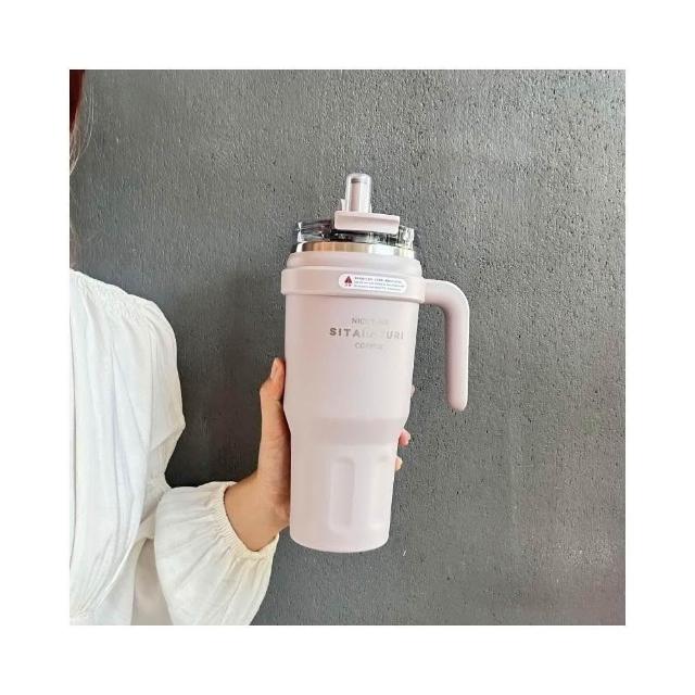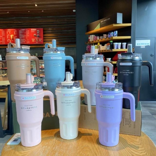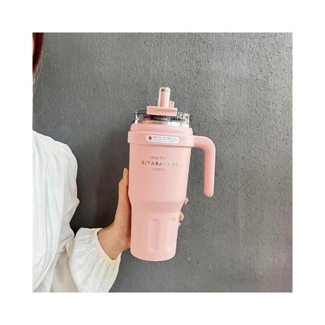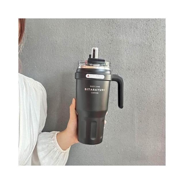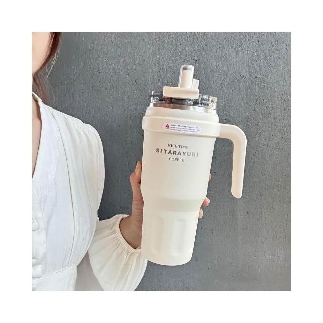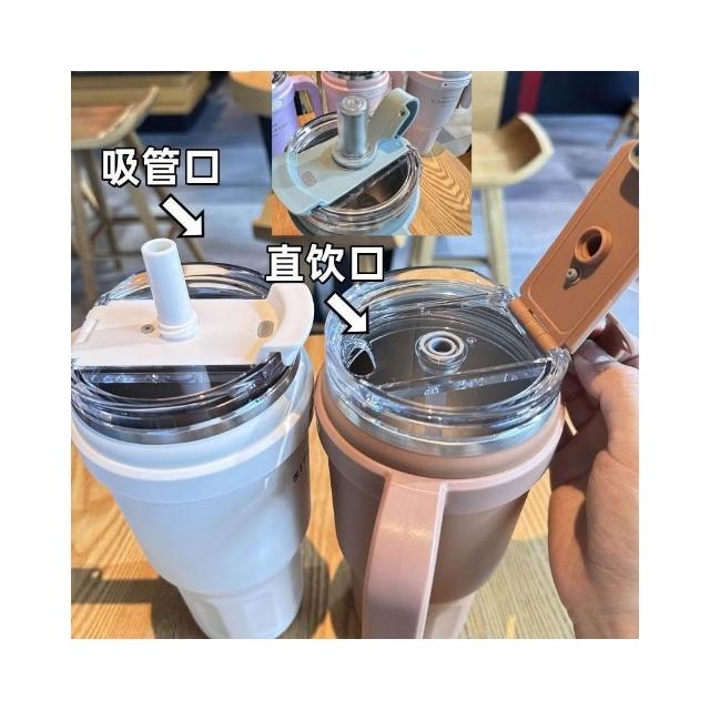 SITARAYURI大容量雙飲手柄保溫杯 304不鏽鋼1100ml冰霸杯 雙飲式旋轉杯蓋防漏保溫大象杯 吸管咖啡杯車載杯
