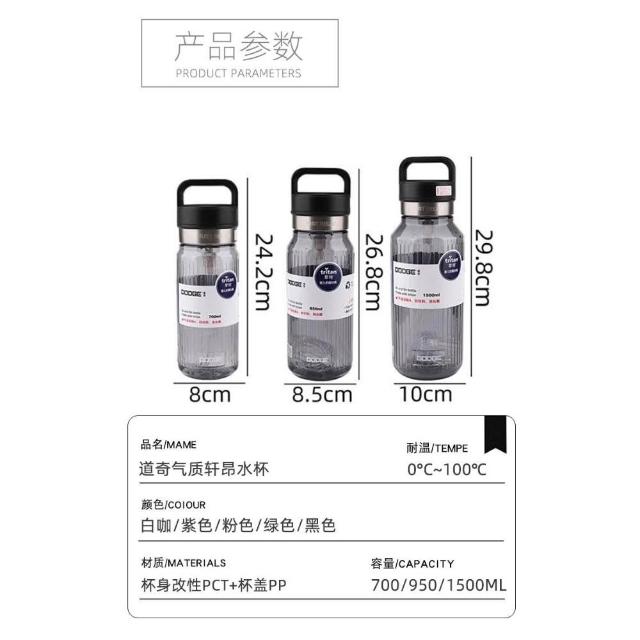 Dodge 道奇道奇TRITAN氣質軒昂運動水壺 TRITAN材質700ml/950ml/1500ml雙飲耐溫水壺 手提附吸管運動水壺