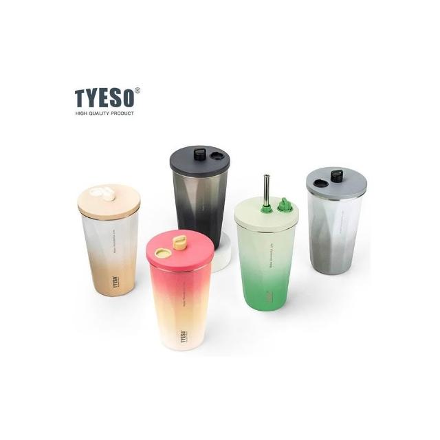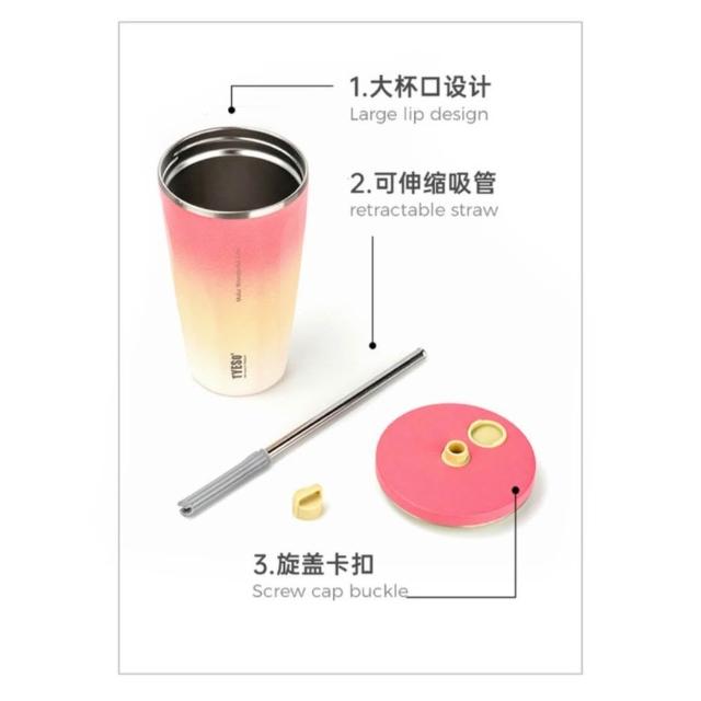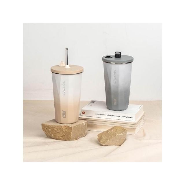 TYESOTYESO漸變色時尚吸管咖啡杯600ml 304不鏽鋼 旋轉杯蓋防漏保溫冰霸杯 附伸縮304不鏽鋼吸管防塵蓋防漏咖啡杯
