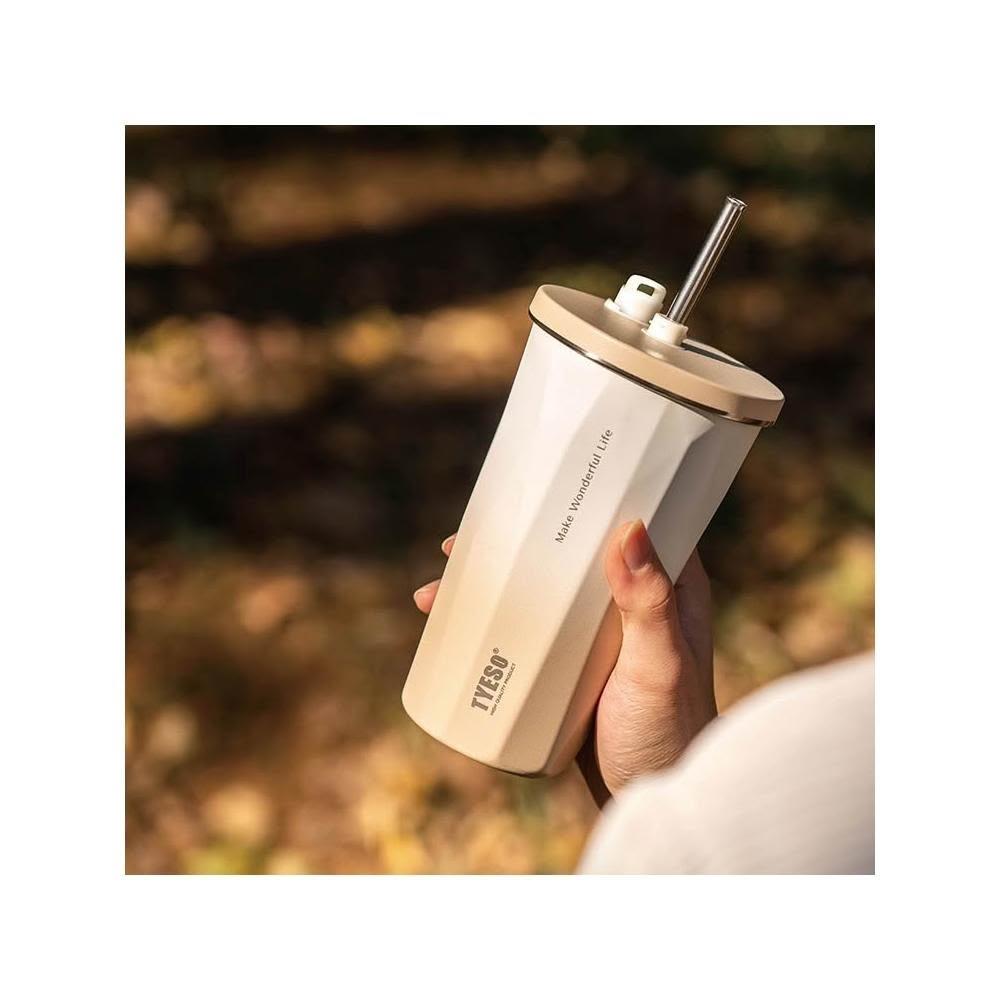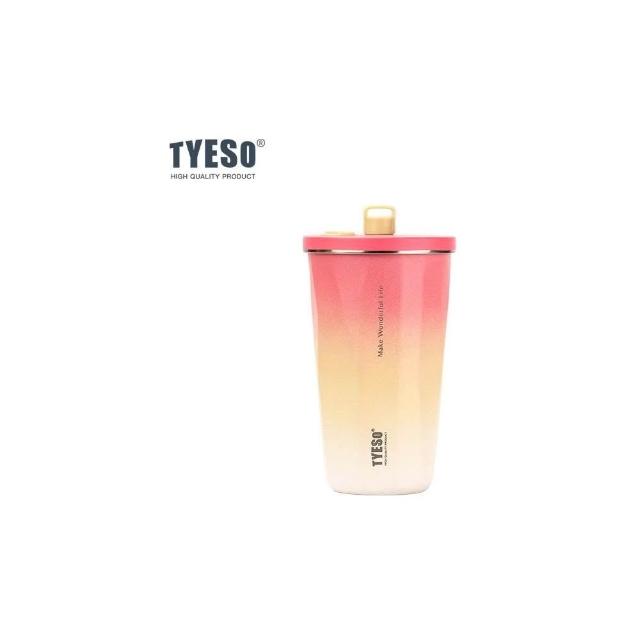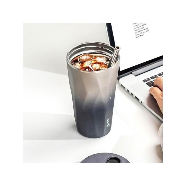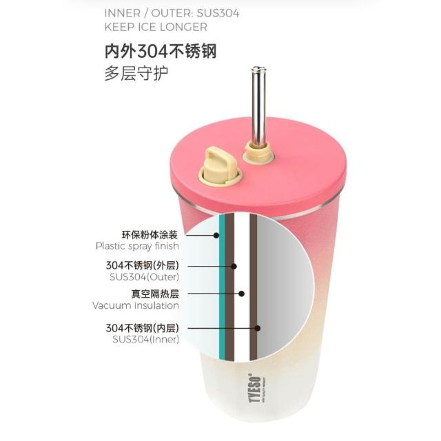 TYESOTYESO漸變色時尚吸管咖啡杯600ml 304不鏽鋼 旋轉杯蓋防漏保溫冰霸杯 附伸縮304不鏽鋼吸管防塵蓋防漏咖啡杯