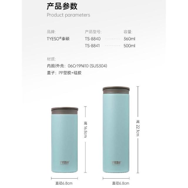 TYESOTYESO翻蓋保溫杯 304不鏽鋼360ml/500ml直身保溫杯 翻蓋直飲防漏旋轉杯蓋水壺 輕量便攜時尚運動咖啡杯