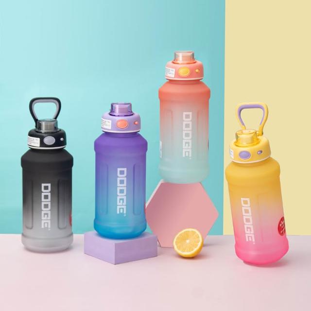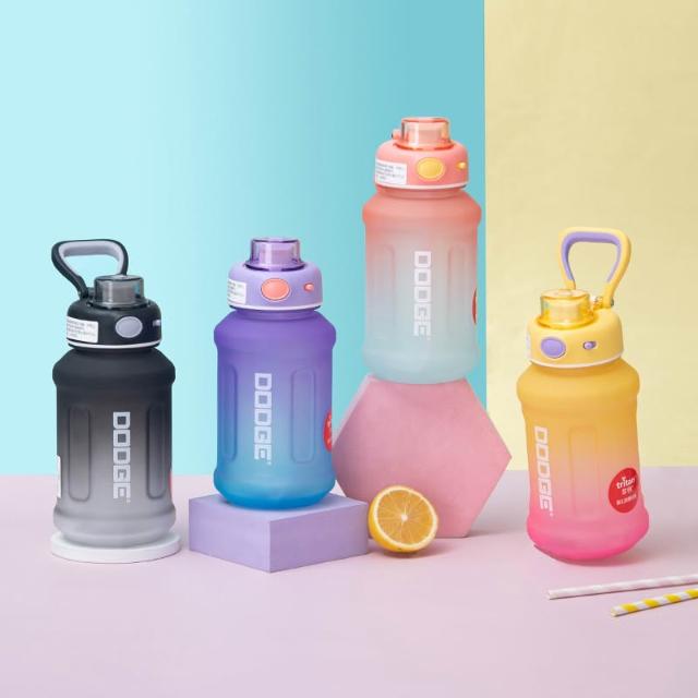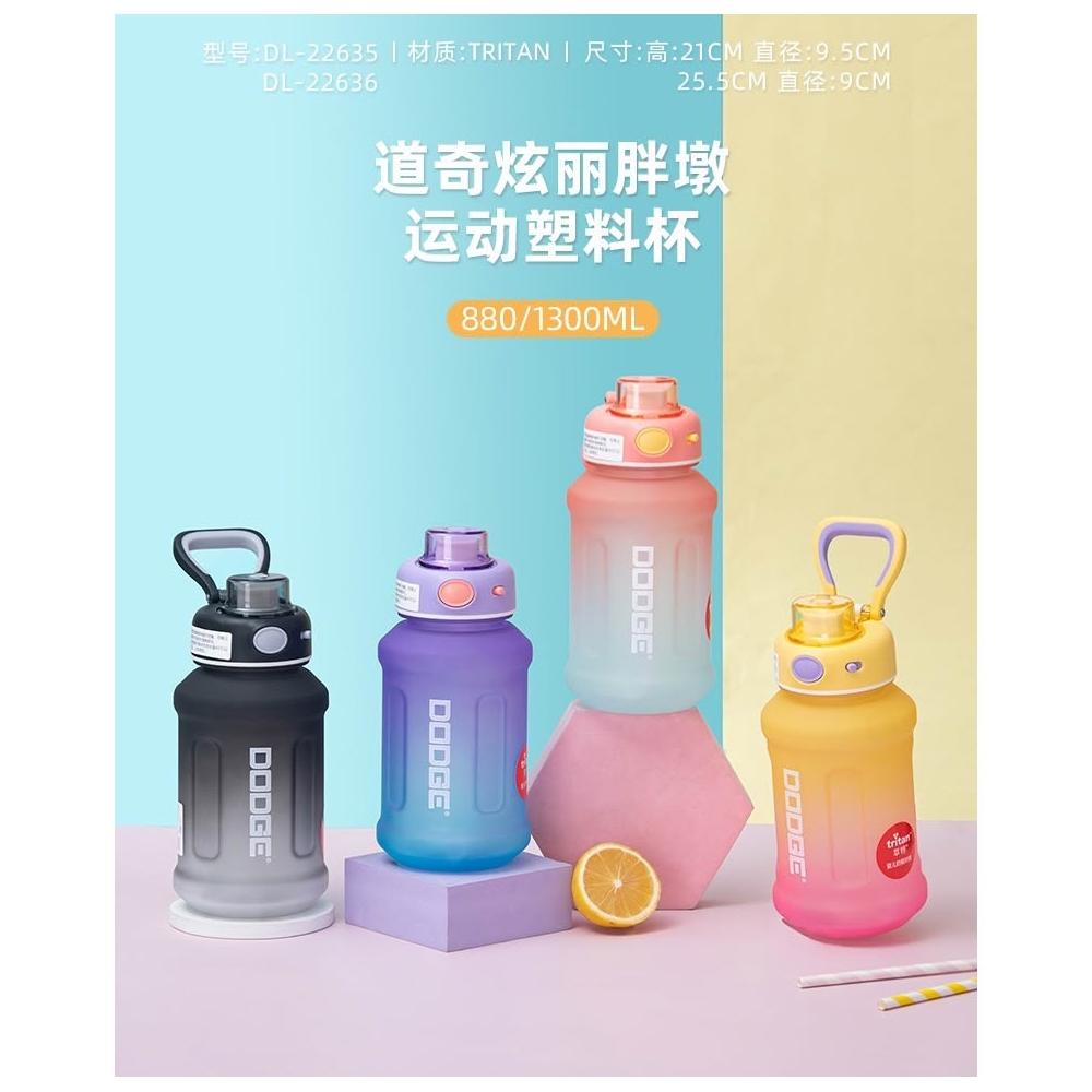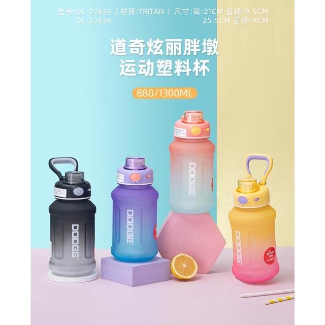 Dodge 道奇DODGE希樂道奇絢麗胖墩TRITAN運動水壺 880ml/1300ml磨砂漸變色吸管水壺 安全鎖手提健身水杯 一鍵開蓋戶外運動隨身壺 學生水壺 磨砂太空壺