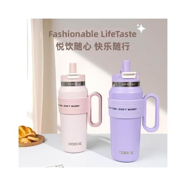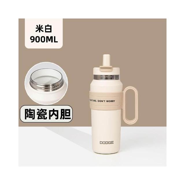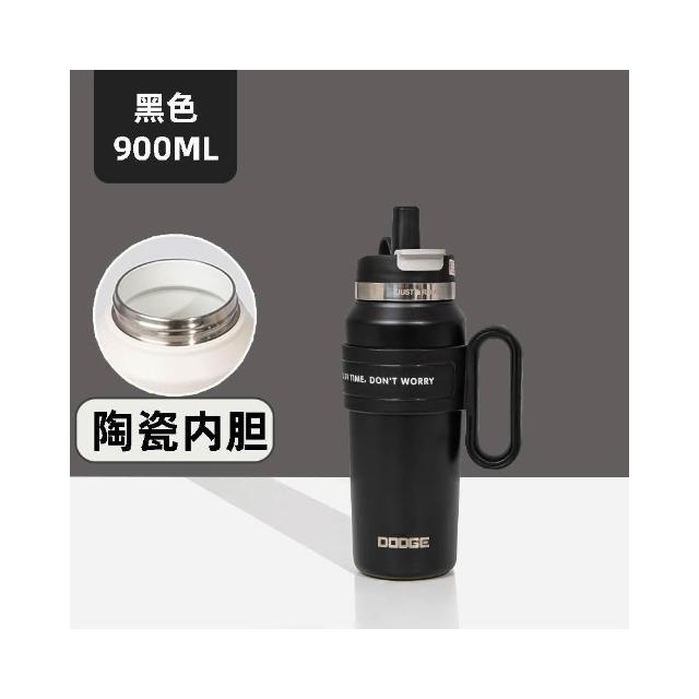 Dodge 道奇DODGE道奇舒暢雙飲保溫杯 304不鏽鋼陶瓷塗層保溫杯 900ml雙飲吸管冰霸杯 手把大象杯 環保咖啡杯 車載保溫杯