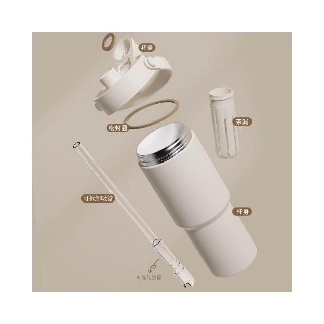 買一送一 735ml陶瓷塗層內膽一杯三飲保溫杯/手把冰霸杯 贈組合式吸管、茶倉 304不鏽鋼保溫隨行杯 車載杯
