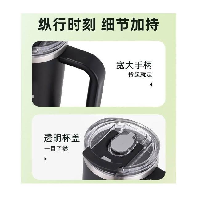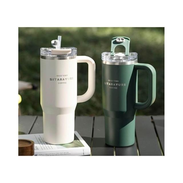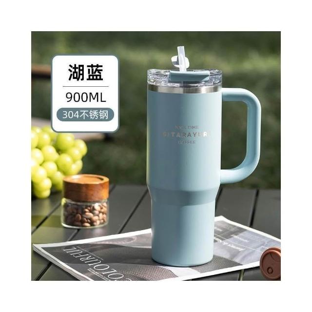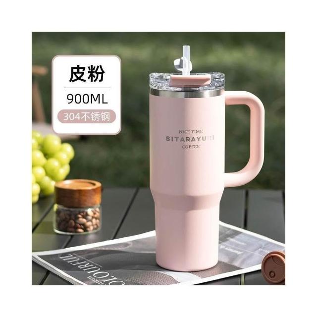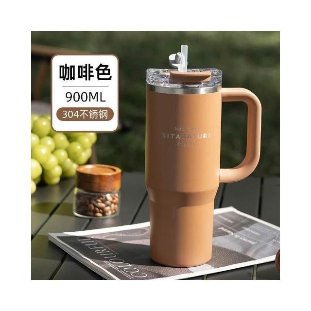 SITARAYURI手柄隨行杯 304不鏽鋼900ml大容量手把冰霸杯 旋轉杯蓋附吸管保溫杯 防漏杯蓋雙飲式咖啡杯車載杯