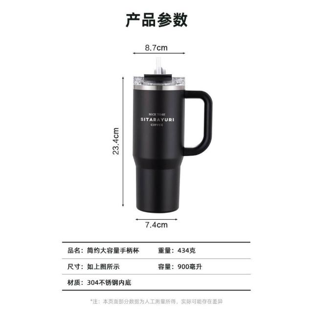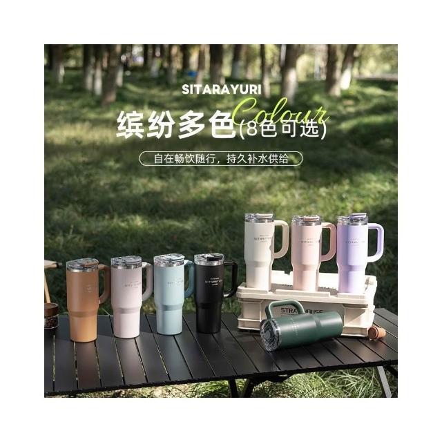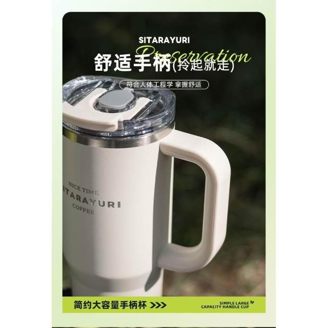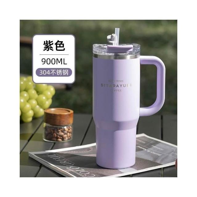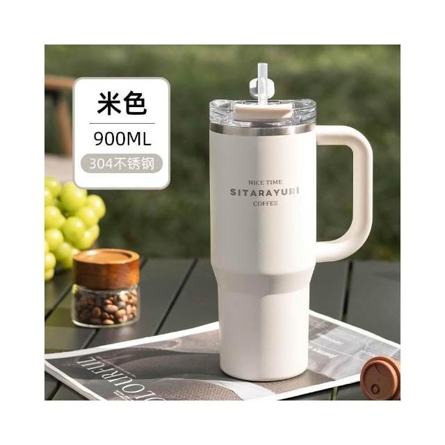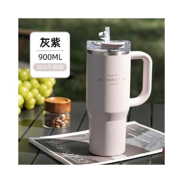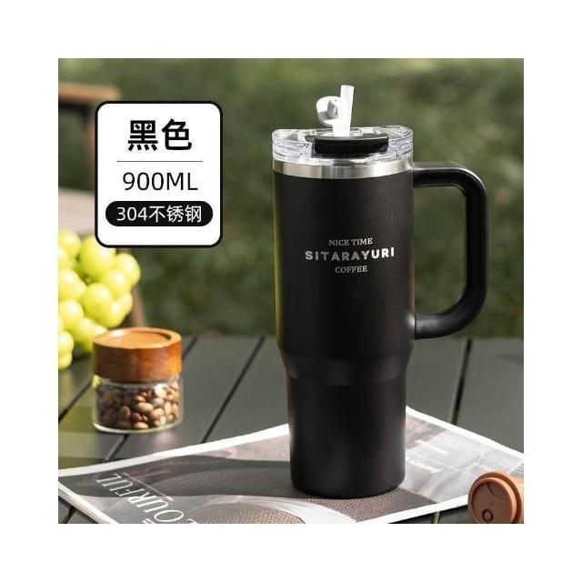 SITARAYURI手柄隨行杯 304不鏽鋼900ml大容量手把冰霸杯 旋轉杯蓋附吸管保溫杯 防漏杯蓋雙飲式咖啡杯車載杯