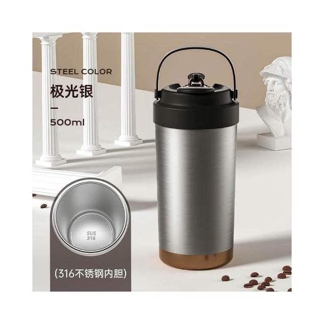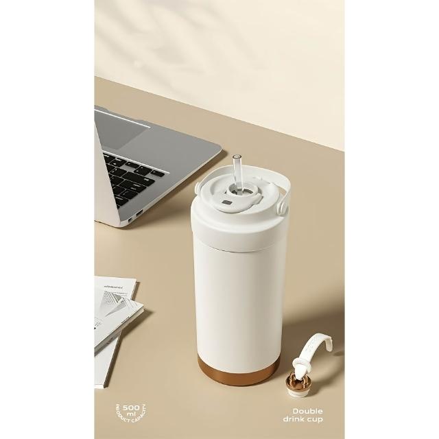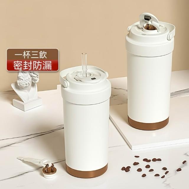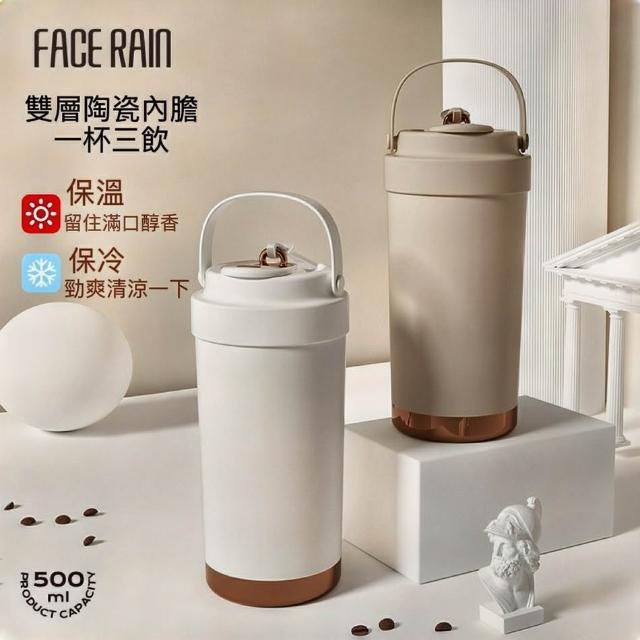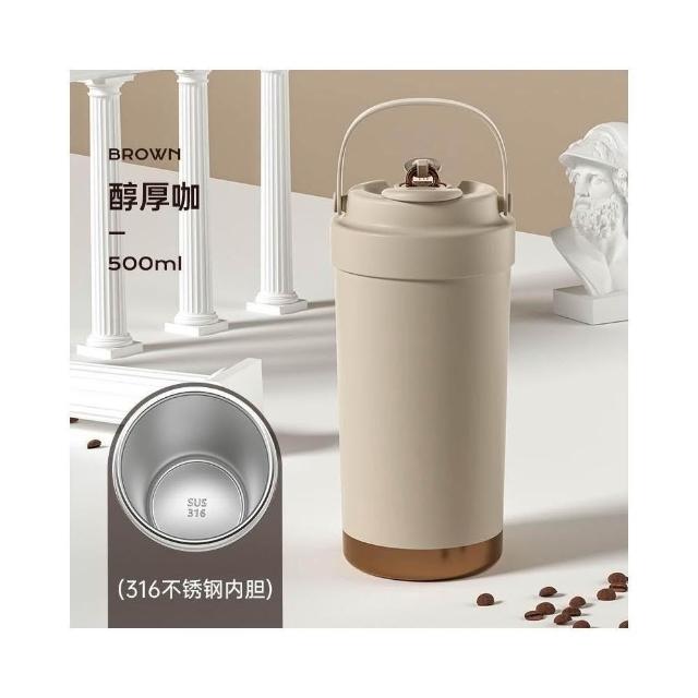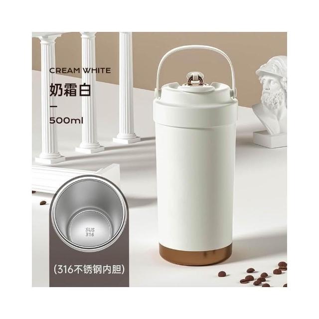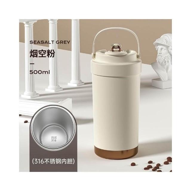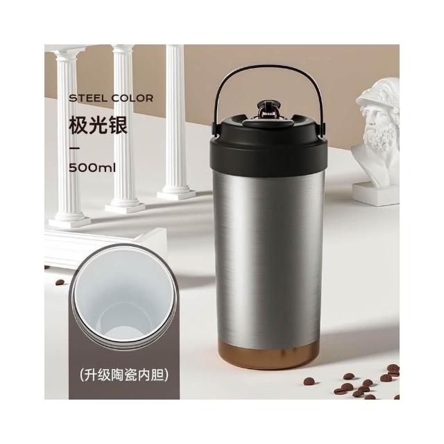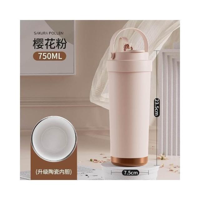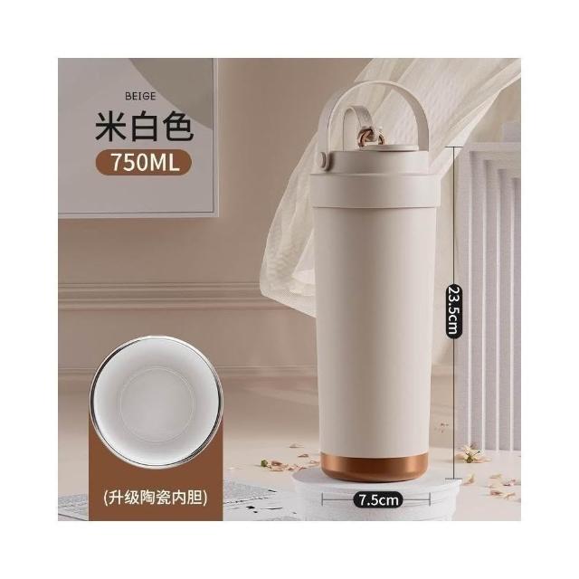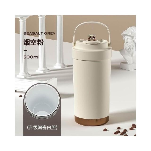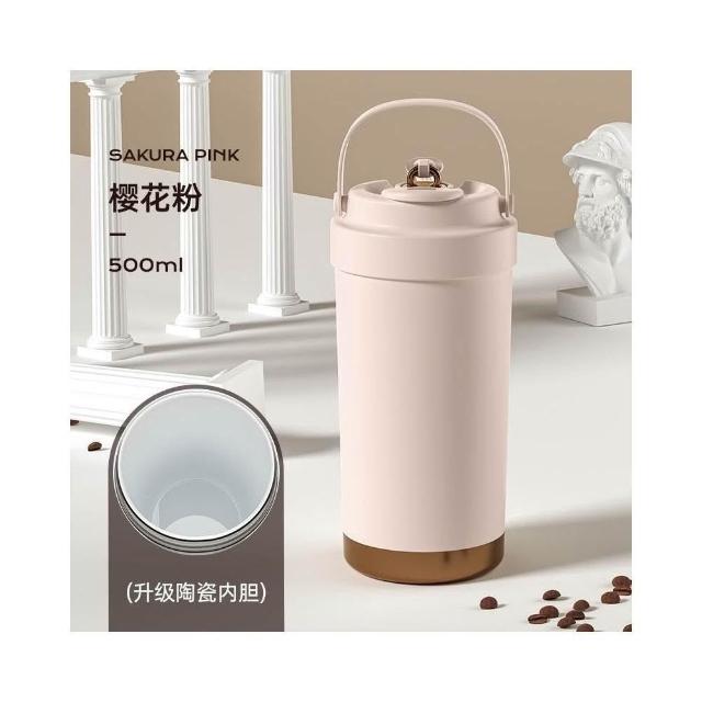 三飲式噴瓷內膽/304不鏽鋼保溫杯 500ml/750ml不鏽鋼咖啡杯 手提陶瓷保溫瓶 附吸管咖啡保溫杯 雙層真空